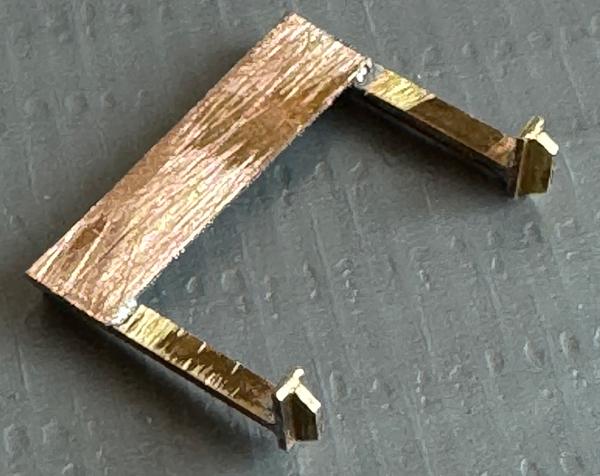 Efter bukning af messingstangen, er den monteret på kedlen med messingtråd Ø0,1mm. I kedlen borede jeg to huller Ø0,3mm ud for det sted, hvor røret skulle fastgøres. Messingtråden til montering er viklet stramt omkring røret og tvundet et par gange på bagsiden. Det tvundne stykke er derefter stukket gennem hullet i kedlen, og enderne af messingtråden er derefter bukket til hver sin side inde i kedlen og fastgjort med cyanoakrylat-lim.