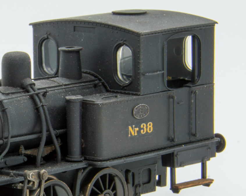FFJ 38 levede sit liv som rangermaskine på Aalborg jernbanestation, og derfor blev den ikke rengjort i samme grad som et lokomotiv, der fragtede passagerer og blev vist frem offentligt. Aalborg Privatbaner passede dog godt på sit materiel generelt, så da jeg skulle patinere min model, gik jeg efter et udseende, hvor maskinen virker forholdsvis velholdt men beskidt. Desuden skulle det gerne kunne ses, at den levede i en periode kort før udrangering og ophugning. Derfor er modellen kun let patineret, og faktisk er det i overvejende grad den ultra-matte klarlak fra Ammo, der giver det slidte og lidt falmede, vejrbidte udseende, som jeg gerne ville have frem.